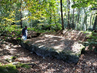 < La Pierre Tournoire, dolmen de plus de 25 tonnes, à Montmerrei